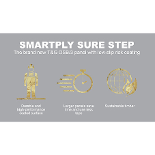 SMARTPLY SURE STEP is a tongue and groove OSB/3 panel with a high performance and durable coating for improved performance during the construction phase of projects. The unique coating brings improved durability and slip resistance.