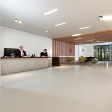 | Sovereign House, a busy office building built in the 1980s, has a footfall of 800 people per day. Ben Adams Architect were tasked with creating a renovation that would tolerate this heavy use. Altro Flexiflow is tough, flexible and can withstand the kind of movement that other resin floors cannot. |