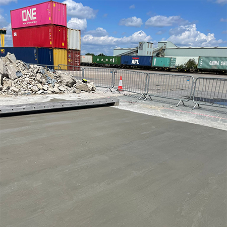 | A Leeds Freightliner container terminal located to the South East of Leeds needed replacement of a number of sections of the external paving. The site is subject to traffic and extreme loading, with vehicles weighting up to 100 tonnes when carrying a container. A number of sections of the external paving had deteriorated. |