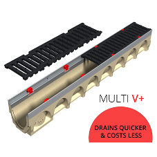 | ULMA presents the Drainage evolution Multi V+ channel, which offers a more competitive price for your project due to its optimized design. The MultiV+ system, whilst reducing maintenance and installation costs, is designed to allow for greater stability and more evenly distributed forces along the entire grating and channel. |