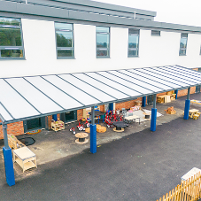 | Twinfix designed, manufactured, and expertly installed a free-standing mono-pitch canopy spanning an impressive 4.7 meters by 18 meters run at East Leake Primary School. This bespoke canopy featured their innovative Multi-Link-Panel NF (non-fragile) roof glazing system. |