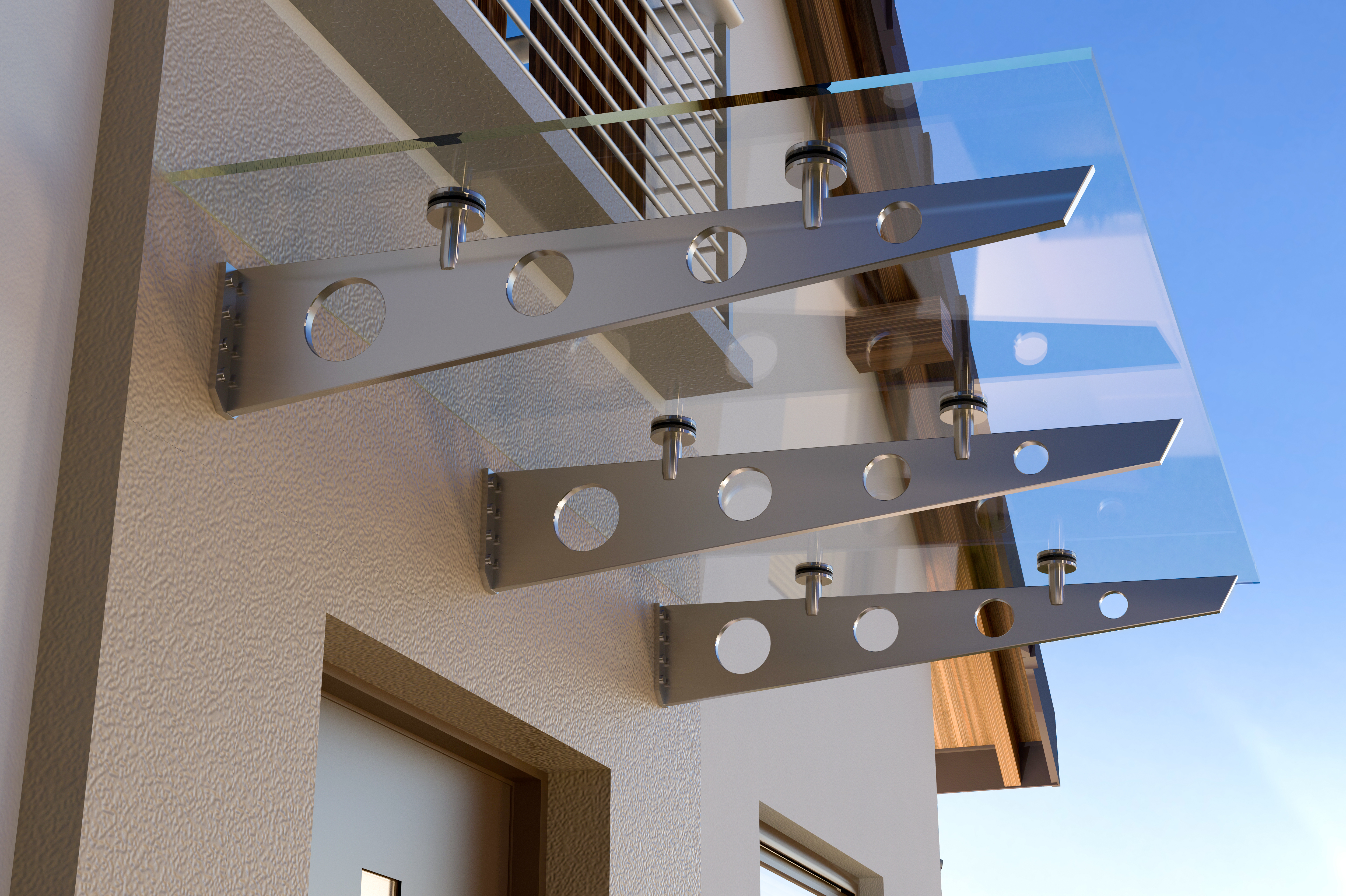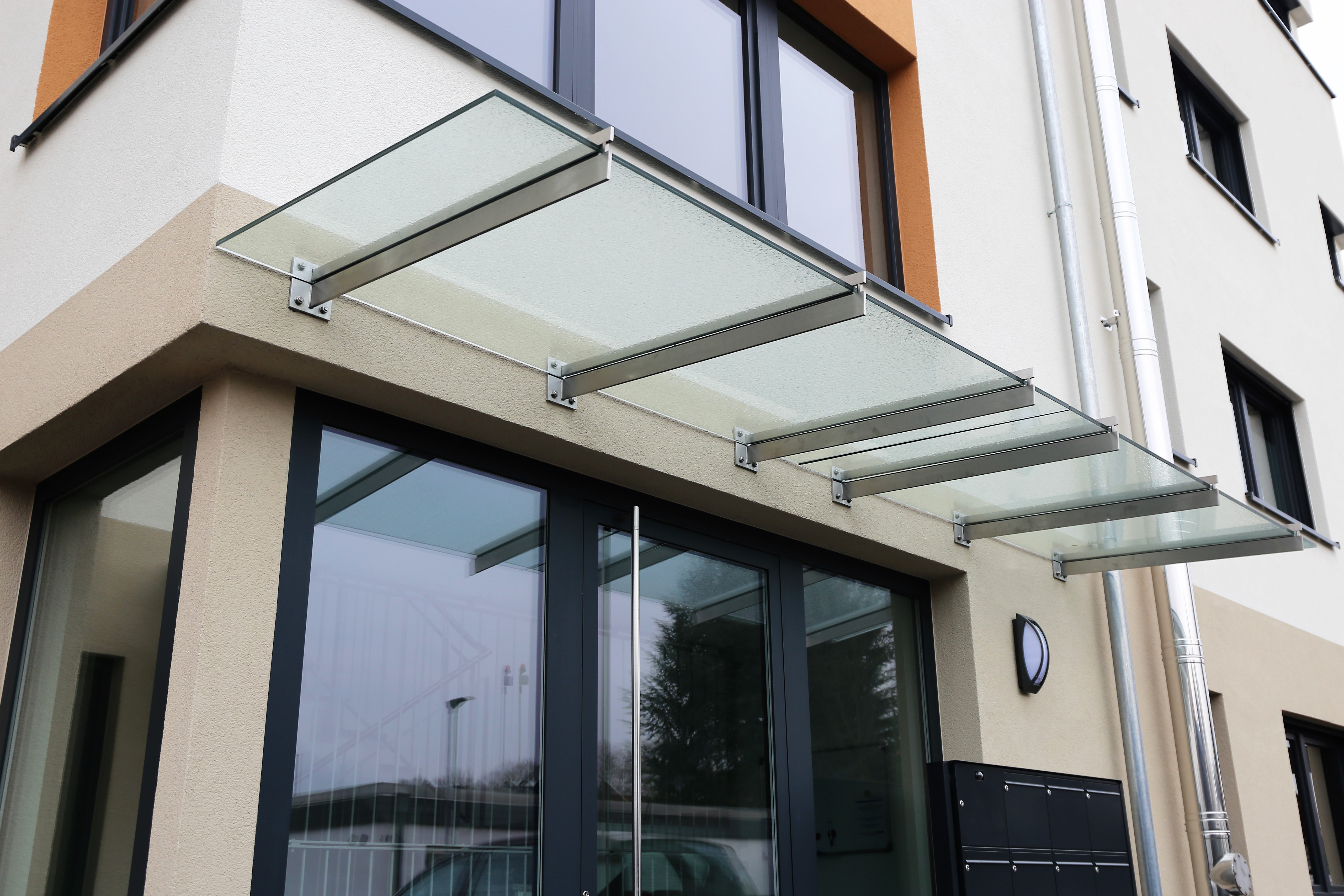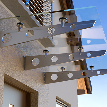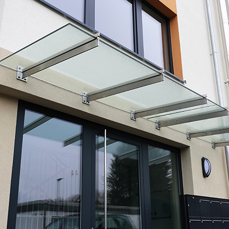 Our canopies offer the perfect shelter for a variety of locations like entrances, walkways, balconies, terraces, and outside dining areas, without obscuring daylight or the character of your architecture.
