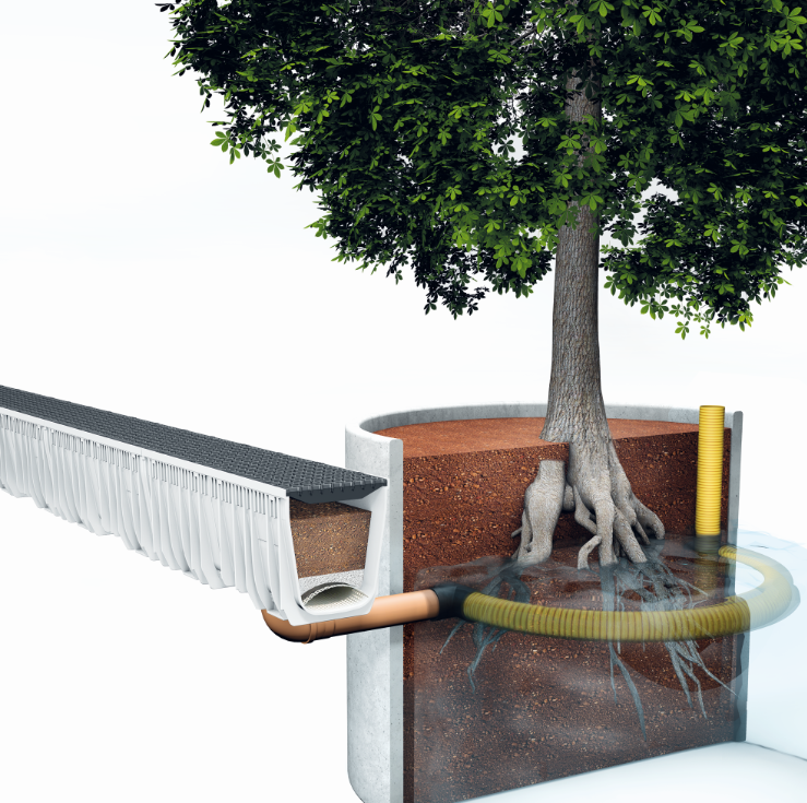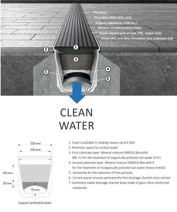 The MEACLEAN system is a smart drainage channel that not only collects rainwater but also cleans it.