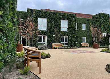 We were delighted to be involved in this striking project for Active Care Group’s Hothfield Rehabilitation Centre in Ashford, Kent. What had previously been a blank brick canvas has now become an oasis of colour, making the space ideal for patients, staff and visitors alike to enjoy.