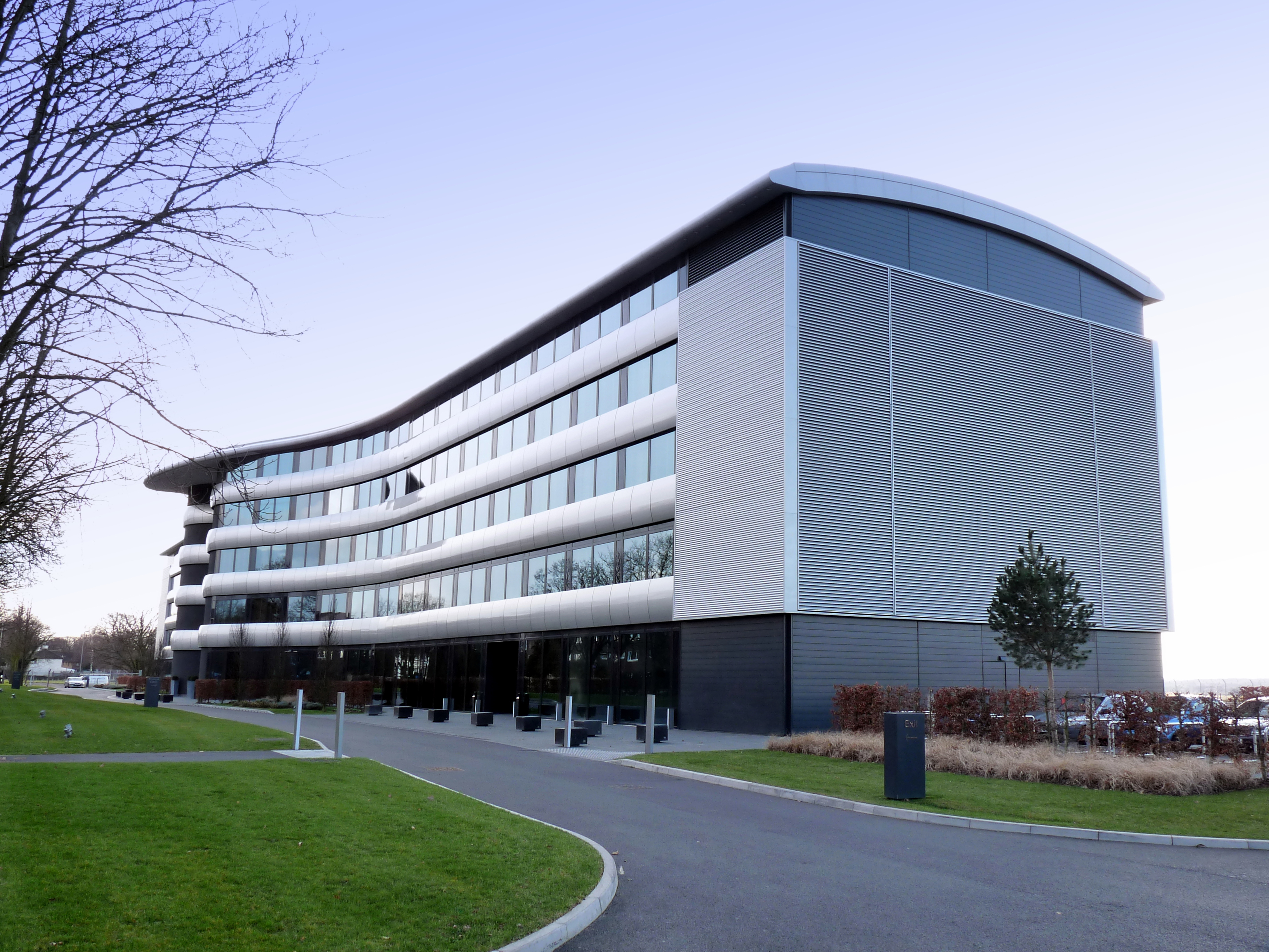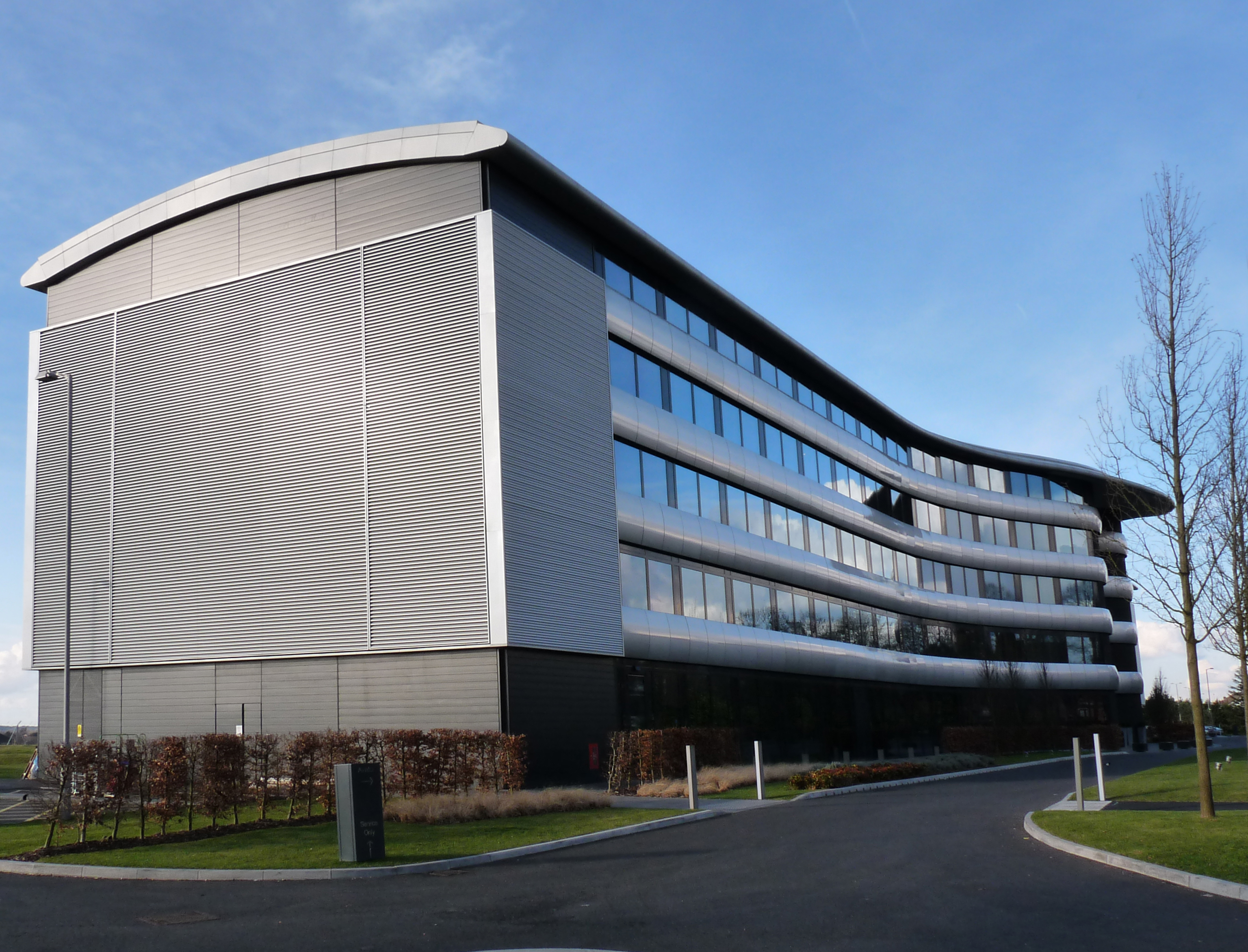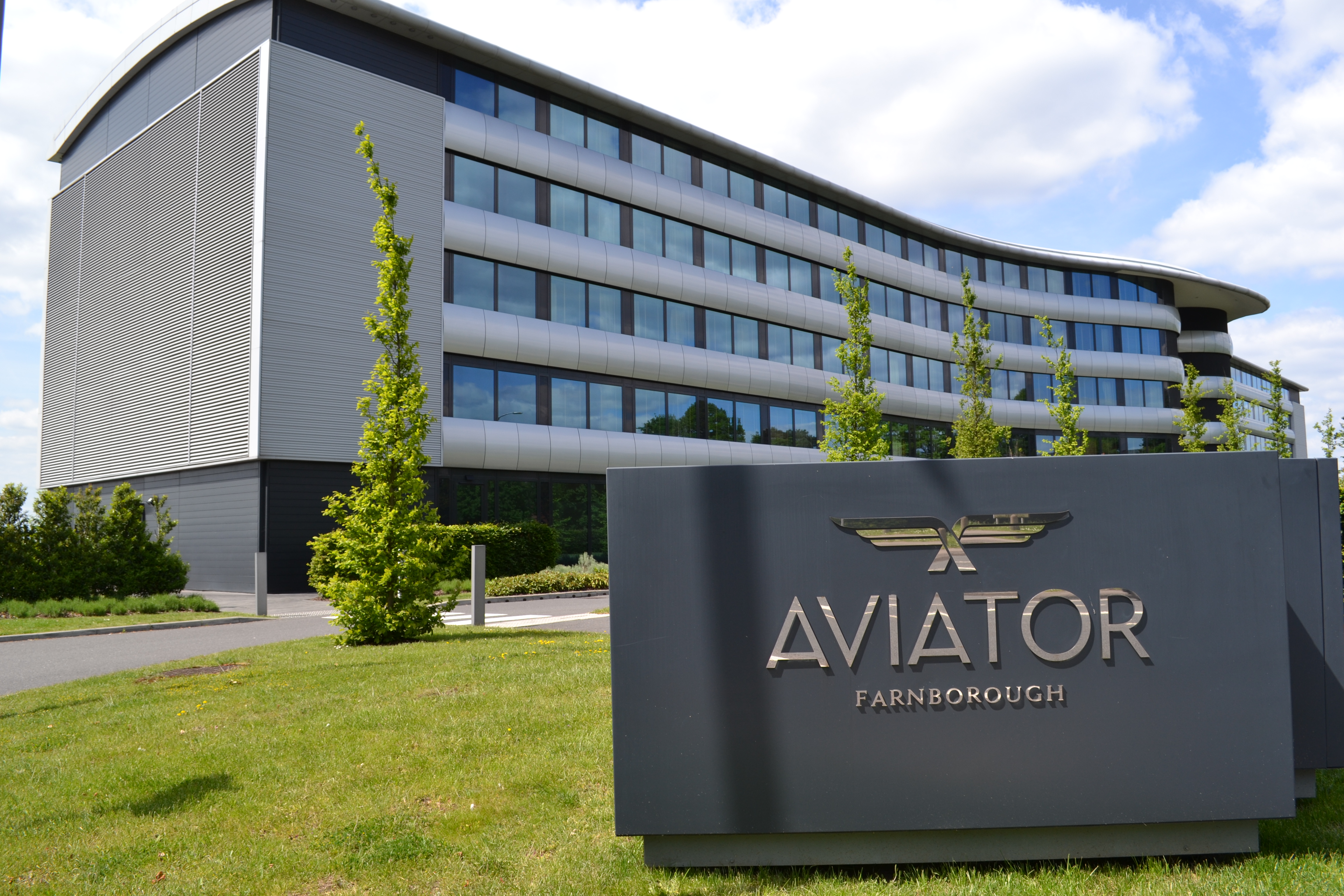 Aviator was designed by Hamilton Associates to look like an aeroplane's propeller when viewed from the sky, featuring a complex curvilinear metal roof structure with a curved central atrium and aluminium cladding to the facade.