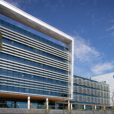The facade for Microsoft’s Central Administration Building in Dublin is complete and has already secured two shortlistings in the prestigious international FX Design Awards in the Product/Surfaces category and Global Project category.
