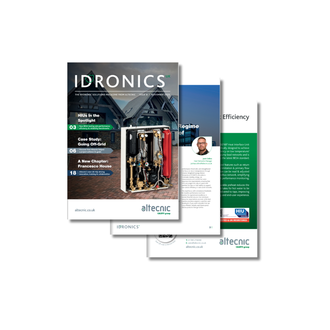 Also featured in this issue of Idronics are several major milestones for Altecnic, including the outstanding BESA test results of the SATK32107 HIU, which achieved more best-practice criteria than any other unit currently tested in the UK. This achievement reinforces Altecnic’s commitment to high-performance, independently verified solutions that support the future of low-temperature heat networks.