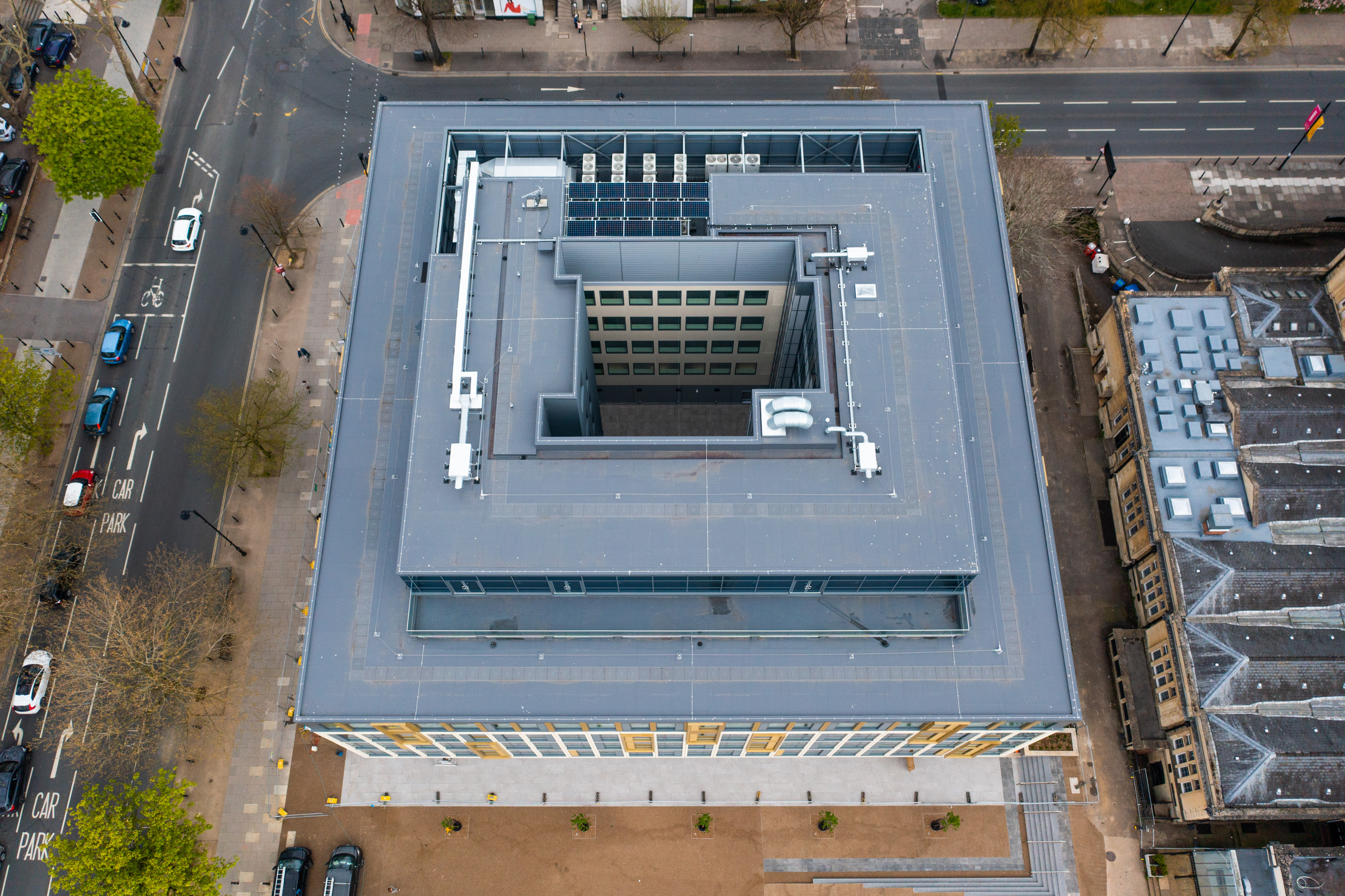 The Quadrangle building in the historic heart of Cheltenham, once a 1970s landmark, has been completely transformed into a contemporary mixed-use commercial development featuring exclusively AluK window, door and curtain walling systems.