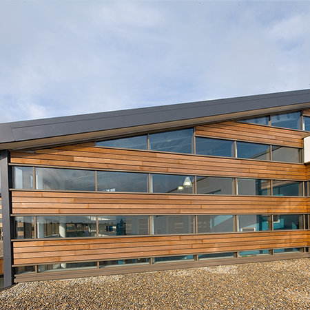 H&J Martin appointed Lindner Prater to deliver a complete building envelope solution. The works included a striking cedar rain screen finish to the exterior of the building, together with Reynaers Eco 50 windows and ConceptWall 50 curtain walling with insert vents – delivering a light and bright interior throughout.