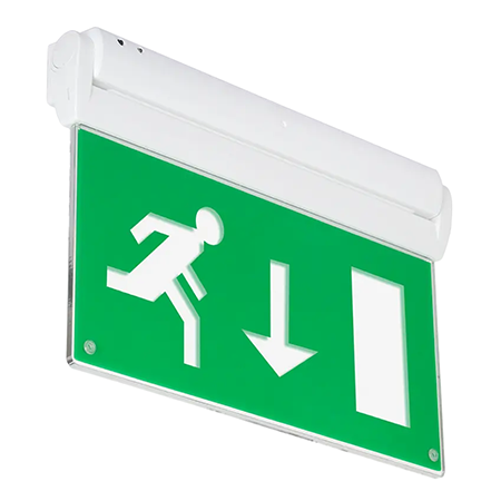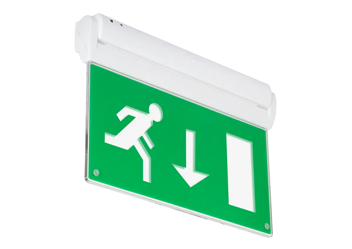 ARLINGTON LiFe is an ICEL endorsed emergency exit sign with lithium batteries and a drop-down blade sign. It is available in manual test and self-test variants.