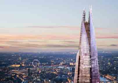 The Shard lies on the South Bank in the citys vibrant new London Bridge Quarter. The vertical city will be the tallest building in Western Europe, at 1,016ft tall, and will house offices, restaurants, luxury residencies and a top-class hotel.