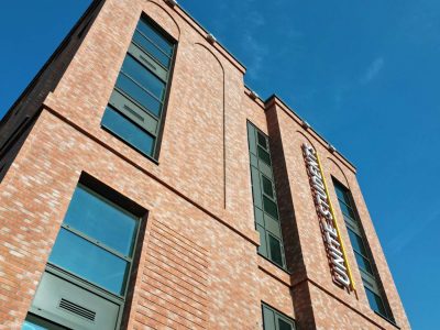 The architectural design draws on the strong industrial heritage of the area, particularly through the use of brickwork arches, a motif seen across Bristol’s historic fabric. These were reinterpreted in a contemporary manner, with a double-height arched colonnade at ground level and arched window heads at upper levels. These elements contribute to a carefully layered facade that balances visual rhythm, civic presence and contextual reference.