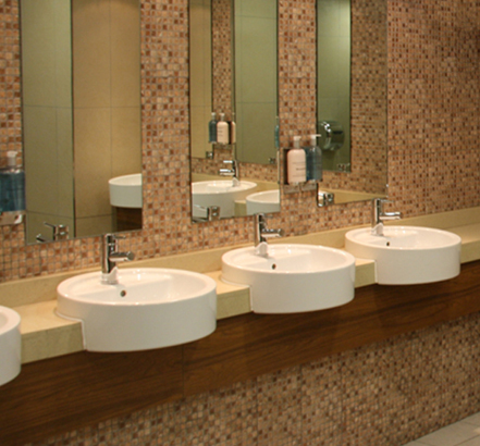 The UKs leading washroom provider, Armitage Venesta, supplied Equinox cubicles with streamline, polished pilasters to provide lasting, modern styling. Jasper Morrison basins installed in granite vanity tops complete a winning, contemporary finish; perfect for this esteemed venue.