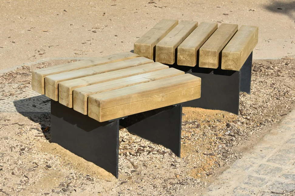 This included one of their Tiptree mild steel and timber Benches, built to a height of 430mm with an armrest at each end.
