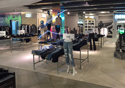 A world class brand in department store has recently completed in Manchester's Exchange Square. Using large format 900x900mm commercial porcelain floor tiles from Bedrock, the client really opened up their large retail space creating a visual treat for their clients. By specifying two colours, the design team create clear circulation routes with the brand spaces identified upon porcelain tiles in the second colour.