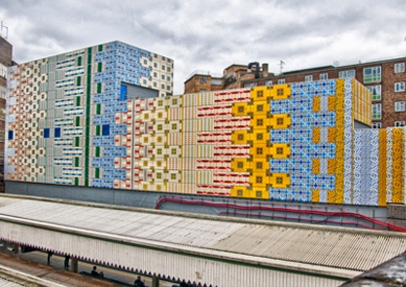 Transport For London (TFL), the client, wanted to create a dramatic, arresting edifice using strongly patterned panels designed by local artist Jacqueline Poncelet, incorporating iconic themes such as cars and the underground logo, within the abstract patterns.