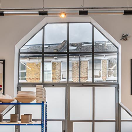 The new owner of this Pottery Studio in London wanted to make the most of the unusually shaped, original single door by changing the design so it included a double door instead. Thankfully this could be done without drastically changing the shape, as only some of the brickwork at ground level needed adjusting.