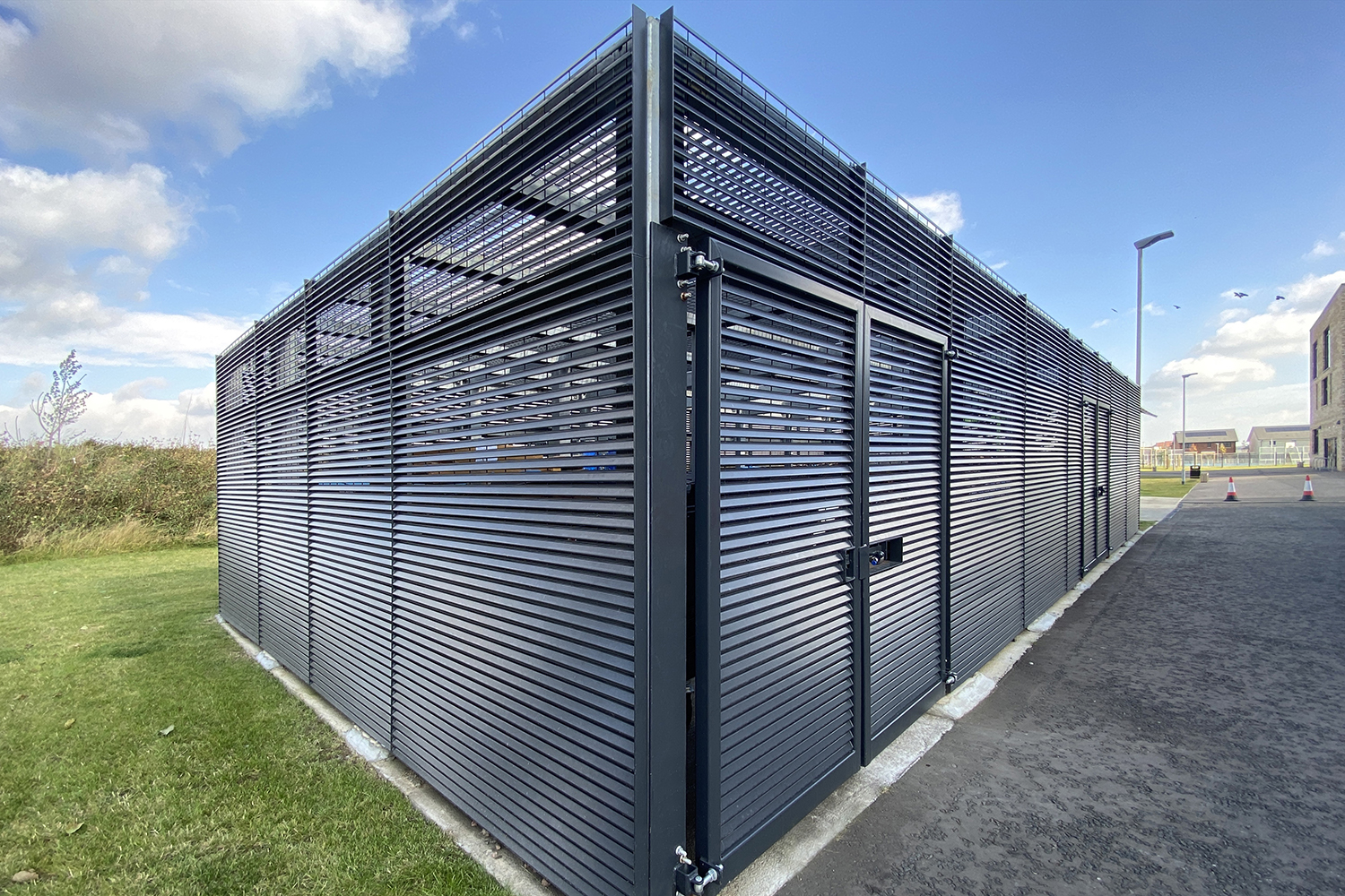 Structures are generally made from one of the Italia or Delta ranges of louvres. The solid steel construction has a proven record of durability and provides visual screening and security, as well as ventilation, natural daylight and anti-climb properties.