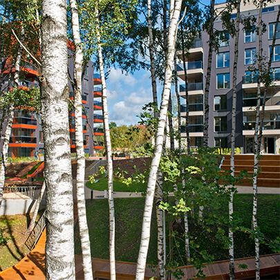 During the project development, modern, efficient and environmentally-friendly solutions were prioritised, which allow to reach the higher standard of quality of life and healthier environment. It is the first project of the developer MG Valda with underfloor heating fitted as a standard. The solution was based on the main vision and findings of the survey of residents' expectations.