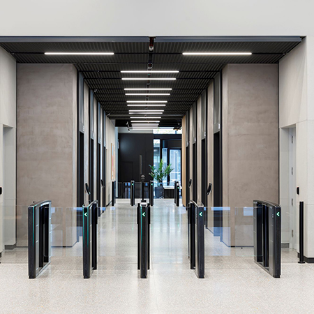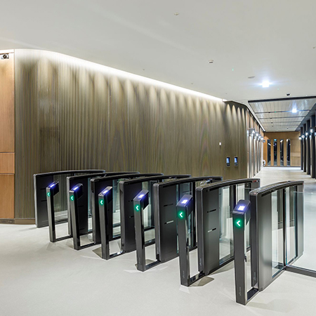 With smooth swinging motion glass barriers and slim, V shaped tapered cabinets, the Speedlane Swing introduces security without disrupting the flow or aesthetics of the interior — making it ideal for premium offices, transport environments, and mixed use developments.