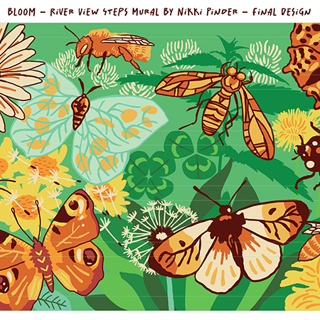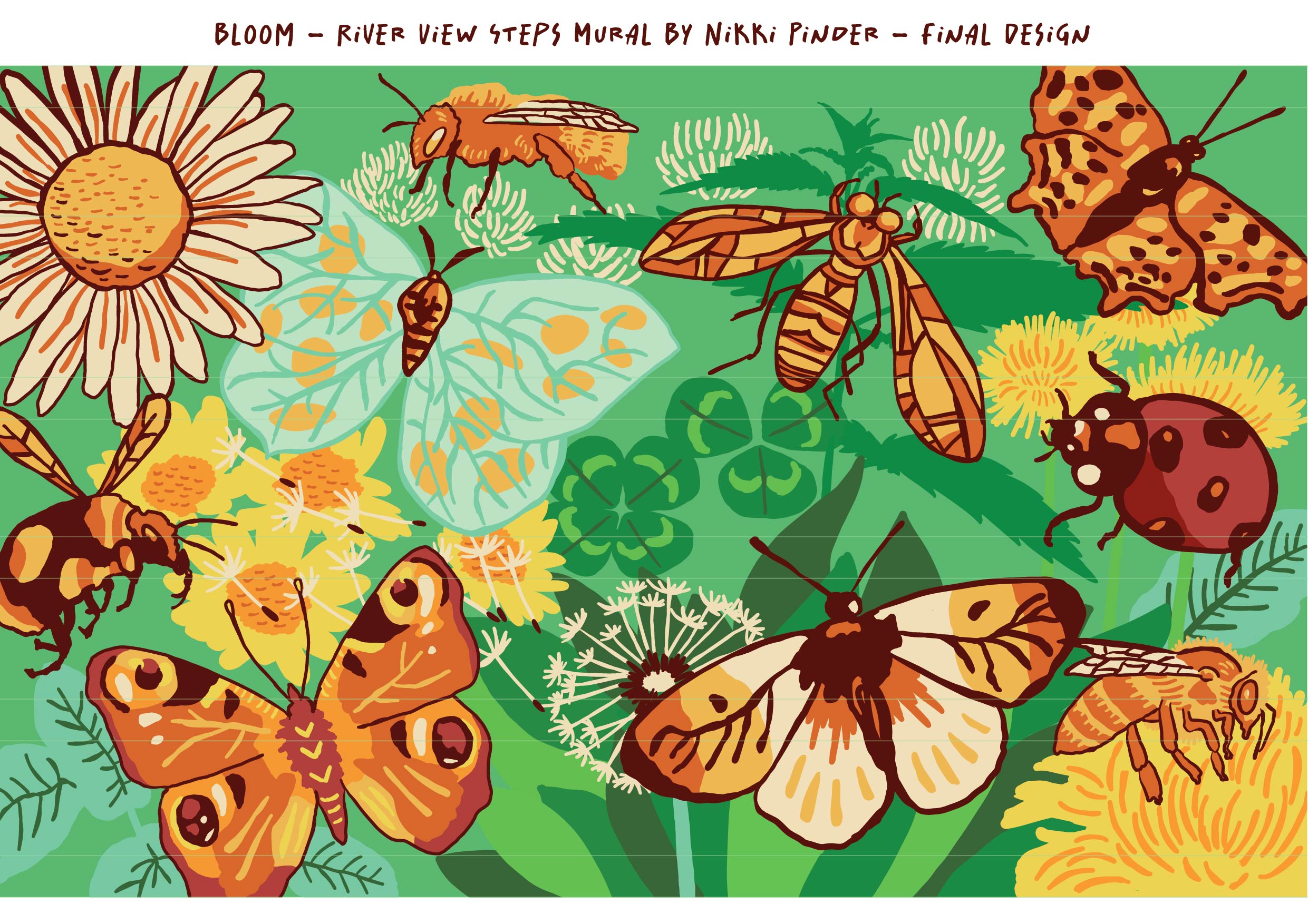 Nikki painted a mural of locally sighted wildflowers and insects on the river view steps. She posted on Instagram to say: ‘Thanks everyone saying hi and sharing your great stories about memories of this place and thanks to @brewerspaints for contributing lots of fab paint for this.’