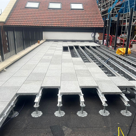 The Wallbarn fire-rated substructure system for Paving or Decking