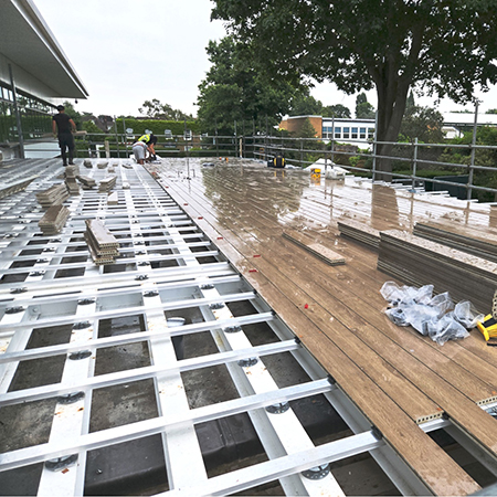 Under current legislation, the external envelope of a building above 11 metres must be constructed using non-combustible materials. This requirement applies directly to balconies, terraces and podium decks. Wallbarn’s Class A system provides a complete, fully metal substructure solution including all rails, joists, pedestals, connectors, fixings and accessories to ensure full compliance on fire rated schemes.