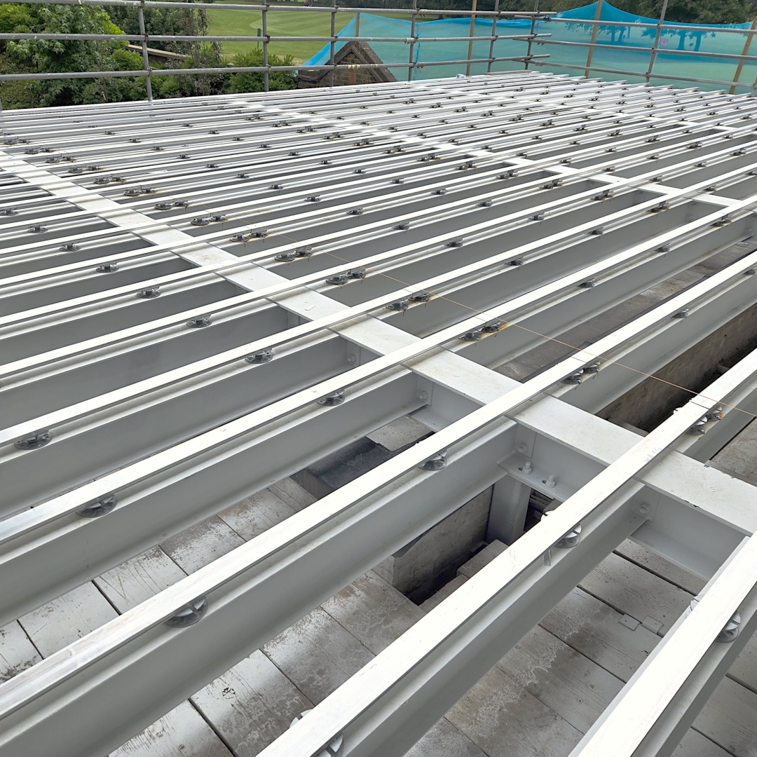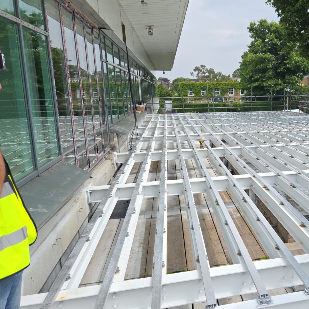 Working alongside the architects, design consultants and structural engineers, Wallbarn provided early technical input on layout design, build up heights and joist spacing to ensure the system aligned with regulatory requirements and the installation programme. A site inspection was carried out during the planning stage to assess the proposed steelwork, review level changes and advise on the most efficient configuration for the aluminium joists and pedestals.