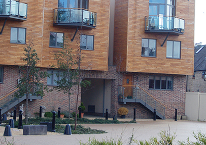 Dolphin Yard is a state-of-the-art development that includes 16 apartments, a public library and the park. The high level specification has attained Level 3 of the Sustainable Homes Code and yet is coupled with the use of traditional building techniques such as brick and block walls and wide lime mortar joints, to reflect the building style of this historic town.
