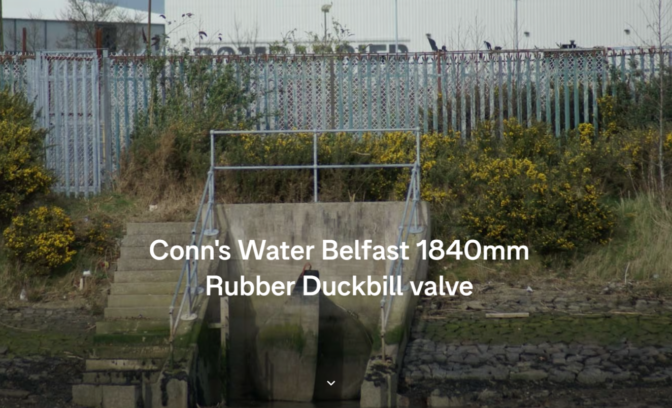 Draining seven acres of roof through a 1500mm PreCast Concrete pipe into the Conn's Water river estuary, this 1840mm Rubber duckbill check valve has been in service since 2010.