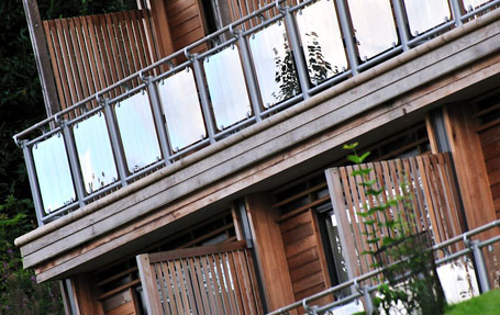 Installed on the private balconies of all 56 Woodland rooms, FUSION® Commercial glass panel outdoor balustrade system has been used to create a safe and stylish outdoor space for hotel guests. Combining hardwood handrails and metal newels, the system features large glass panels that maximise the sense of space and allow guests to enjoy the woodland views.