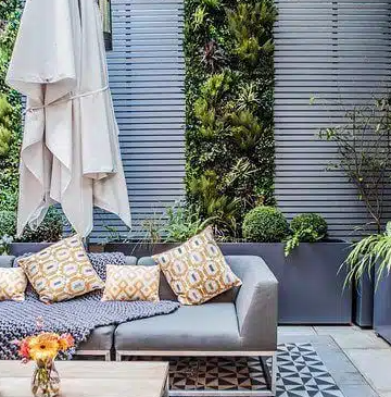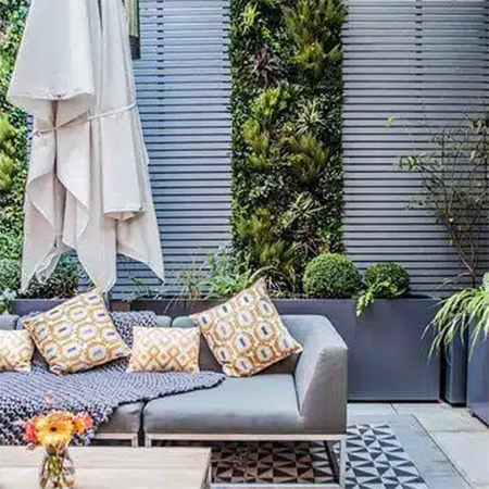 Grey and green should definitely be seen. The client was over the moon with his new and elegantly sophisticated courtyard and couldn’t believe that the whole installation took less than a day to complete. Impressed by the incredibly high quality of Vistafolia’s artificial faux foliage, the client was even more impressed with the fact that, not only can his new walls be recycled but, they can also be easily customised with colour boxes, should he decide on a change of scenery.
