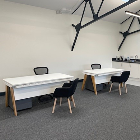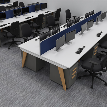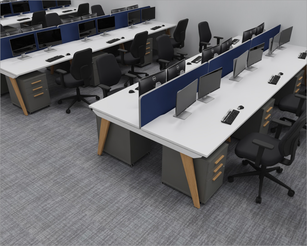 It was evident in the early planning stages that the natural texture of our Evolution oak finish provided the design aesthetic our client was looking for. They selected white desktops out of 18 board finishes and oak tapered leg design (that also comes in 21 RAL painted options).