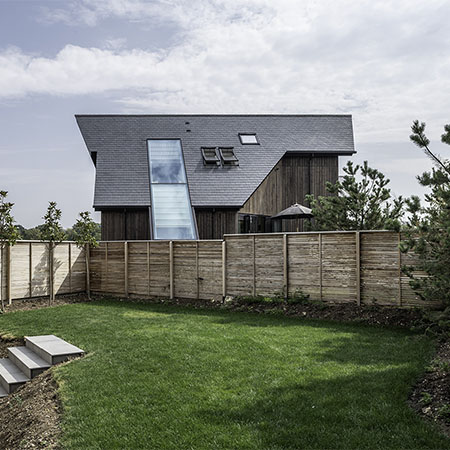 The unique design of the houses features extensive use of dark grey aluminium glazing systems including rooftop lanterns and large sloping roof windows. The placement of the expansive glazing as well as the layout and orientation of the buildings was devised to maximize the natural light and make the most of the surrounding landscape. In addition to the CUPA 18 natural slate, the design also includes high quality natural timber cladding, sedum green roofing and natural stone blockwork.