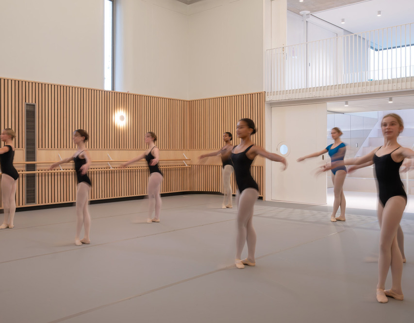 The studio is fitted with a Harlequin Cascade performance vinyl floor, designed to provide a slip resistant smooth dance surface. This ensures dancers can train safely, build confidence and focus on their technique.