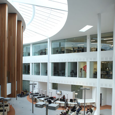 A spacious atrium facilitates significant natural light ingress into the interior via the curtain walling as well as providing a link to the various areas. These include additional office accommodation, a one-stop customer service centre, council chamber and members accommodation.