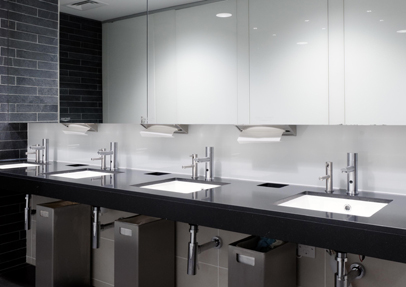 Bell-Chem soap dispenser and Infra-red taps have been installed as part of the refurbishment works at CBRE office Headquarters, London. To complement the clean, crisp and contemporary style of this washroom the architect of this prestigious office refurbishment chose matching pairs of Dolphin's renowned products.