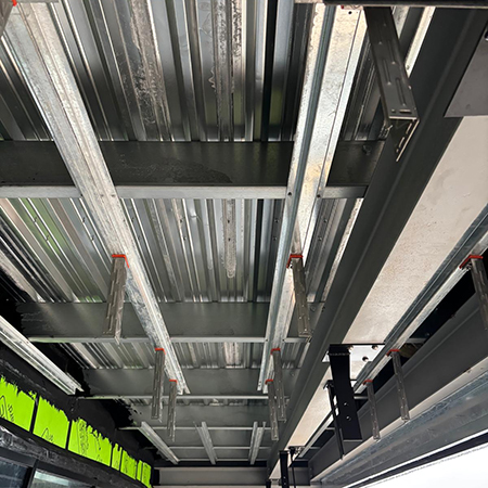 “By utilising the CROSSFIX system in conjunction with EJOT’s technical support, the system’s enhanced structural and spanning capabilities were identified and incorporated into the design, enabling a reduction in the quantity of material required for the soffit installation when compared with a traditional bespoke fabricated support framework. This was achieved while maintaining a fully engineered, structurally robust solution and reducing the practical and ergonomic challenges associated with overhead installation works.”