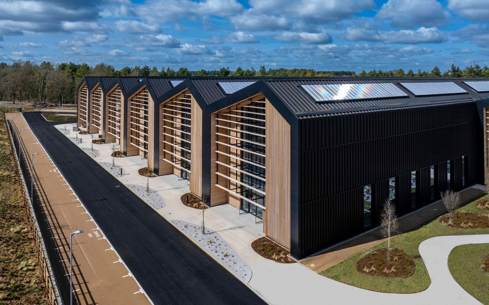Designed by architects Scott Brownrigg to meet Carbon Net Zero in construction and target BREEAM Very Good certification, the new development follows a fabric first approach. The building’s eye-catching design features a sawtooth roof with a building envelope that utilises a carefully considered palette of materials. This includes dark standing seam roofs and outer walls combined with naturally finished timber cladding to complement the natural setting and enhance the building’s striking architectural form.