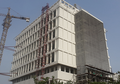 This seven storey multi-purpose office block was constructed in Accra, Ghana by Nowak Developments Ltd between 2012 and 2014. Aluminium Systems Ltd provided their louvre blades to screen the roof top water tanks, and to provide privacy to the penthouse offices, in total over 750 m2 of screening was supplied.