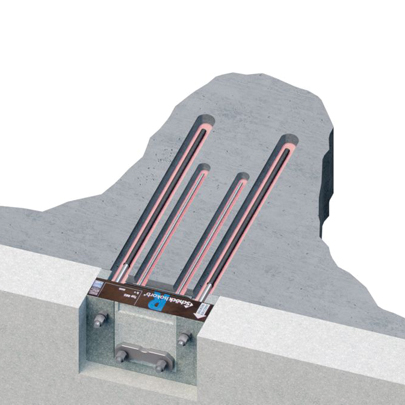 The new type R however, which is currently at final market test stage, works in a structurally different way to the KST and is designed for use with existing reinforced concrete floor slabs. The installation principle with the type R, is that drill holes are marked with a template in position on the face of the building. The holes are drilled into the concrete slab, adhesive injected and the type R load-bearing reinforcing rods slipped into position and anchored by means of the pre-injected adhesive. Structural screed is then poured into a special pocket between the type R and the concrete slab, to ensure a perfect contact between the two structural elements. Once both the mortar and the screed are cured, the structure is ready for the new balcony to be connected.