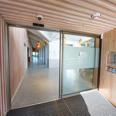 Two automatic doors from GEZE UK helped to create a stylish lobby at the National Trust for Scotland's new Battle of Bannockburn Visitor Centre. Bannockburn Visitor Centre, which offers an immersive 3D digital experience that transports visitors back in time, is entered through a wedge-shaped lobby featuring two GEZE ISO automatic sliding doors powered by Slimdrive SL operators. The lobby will contribute to the building's sustainability by ensuring an even temperature is maintained inside.