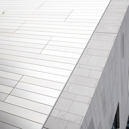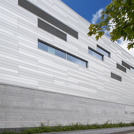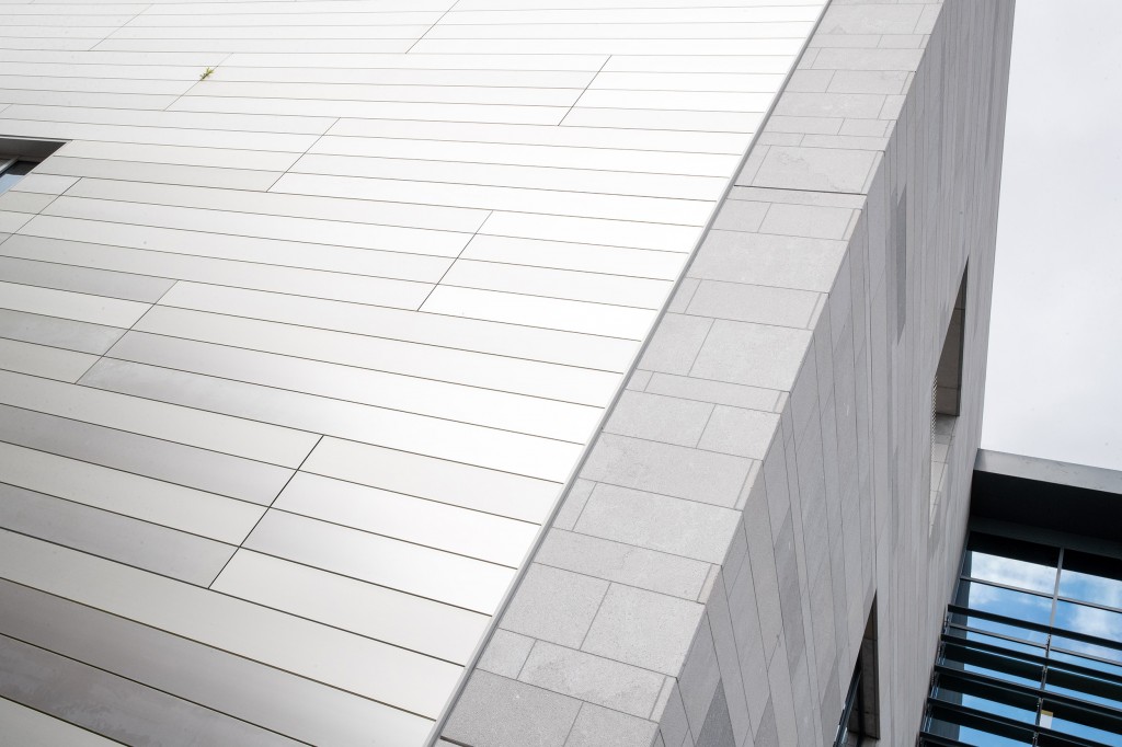 To complement the grey limestone used elsewhere on the 8,800m2 building, Aliva designed, manufactured and supplied its recognisable Alu.covering® system, all in less than 10 weeks. The building comprised three separate facades, with a total surface area of 1,400sqm.
