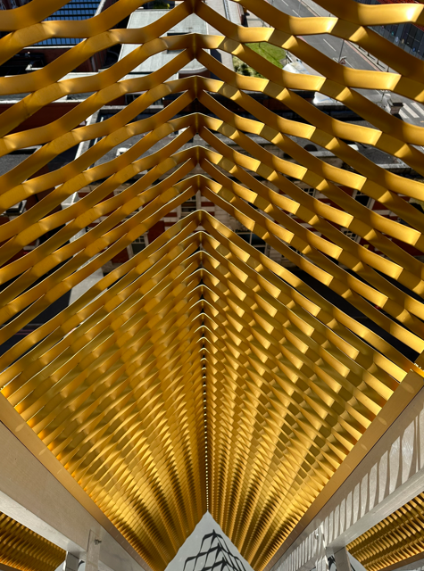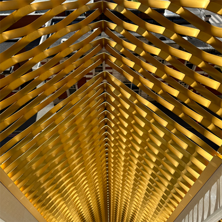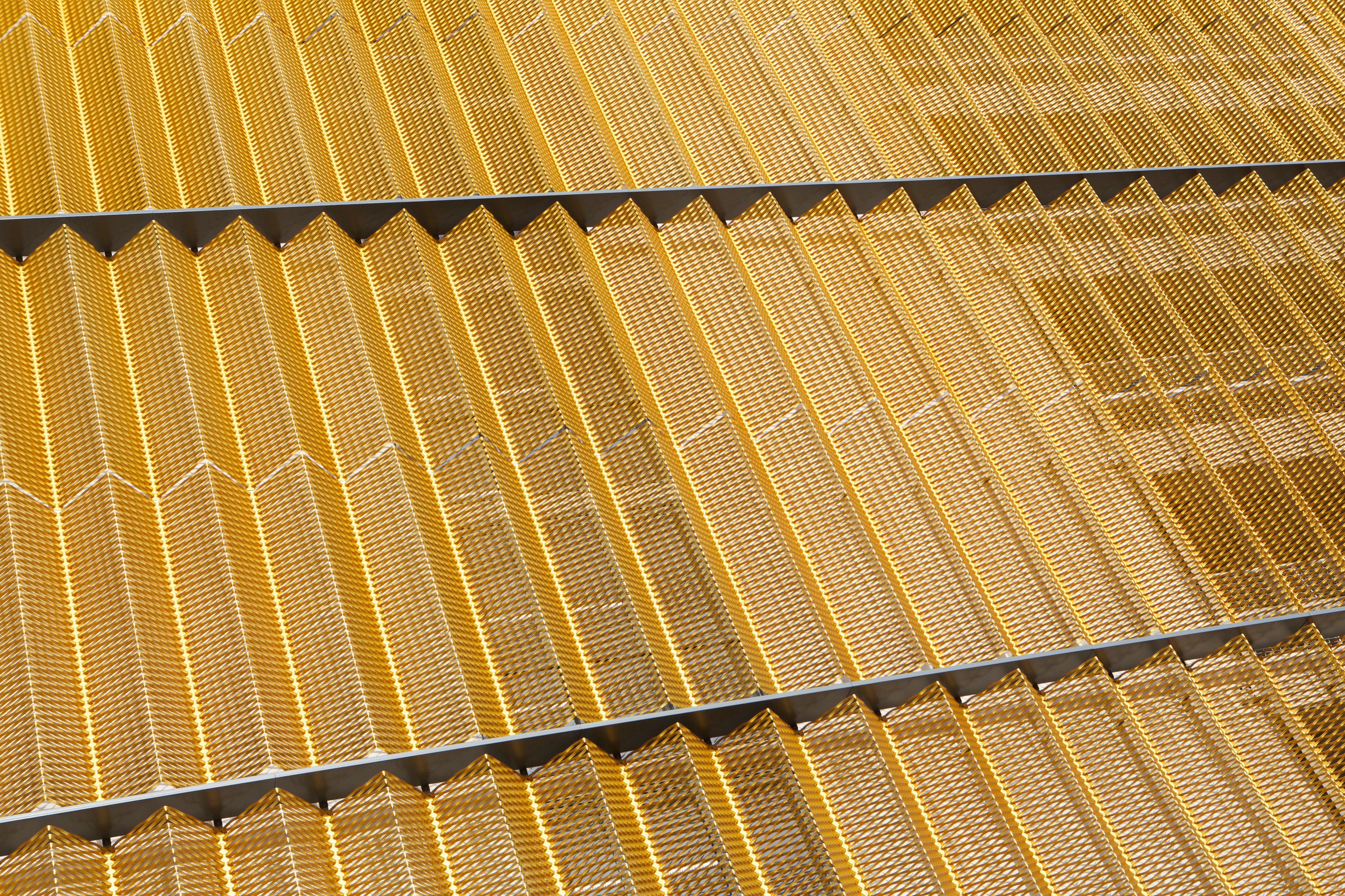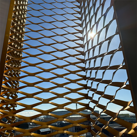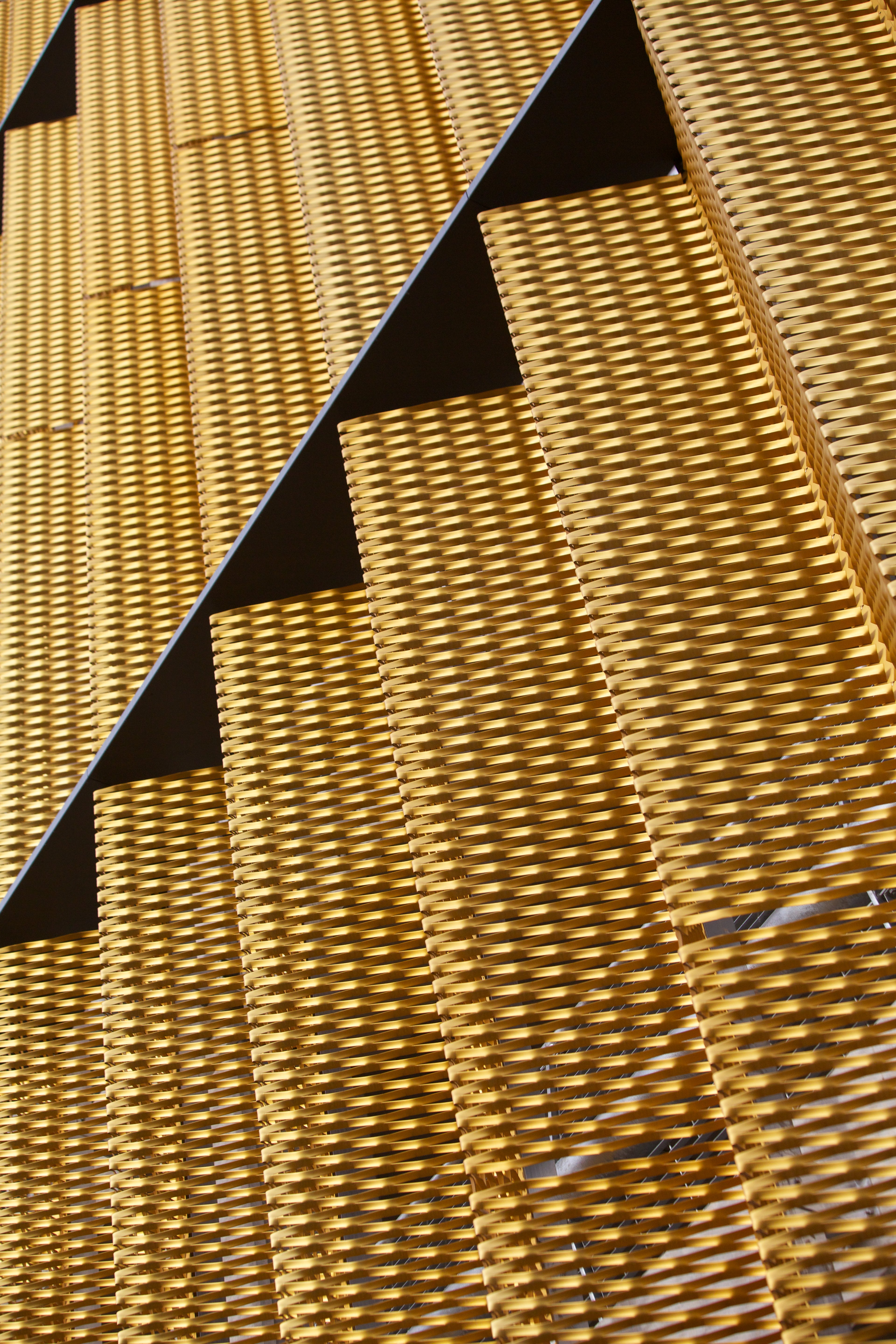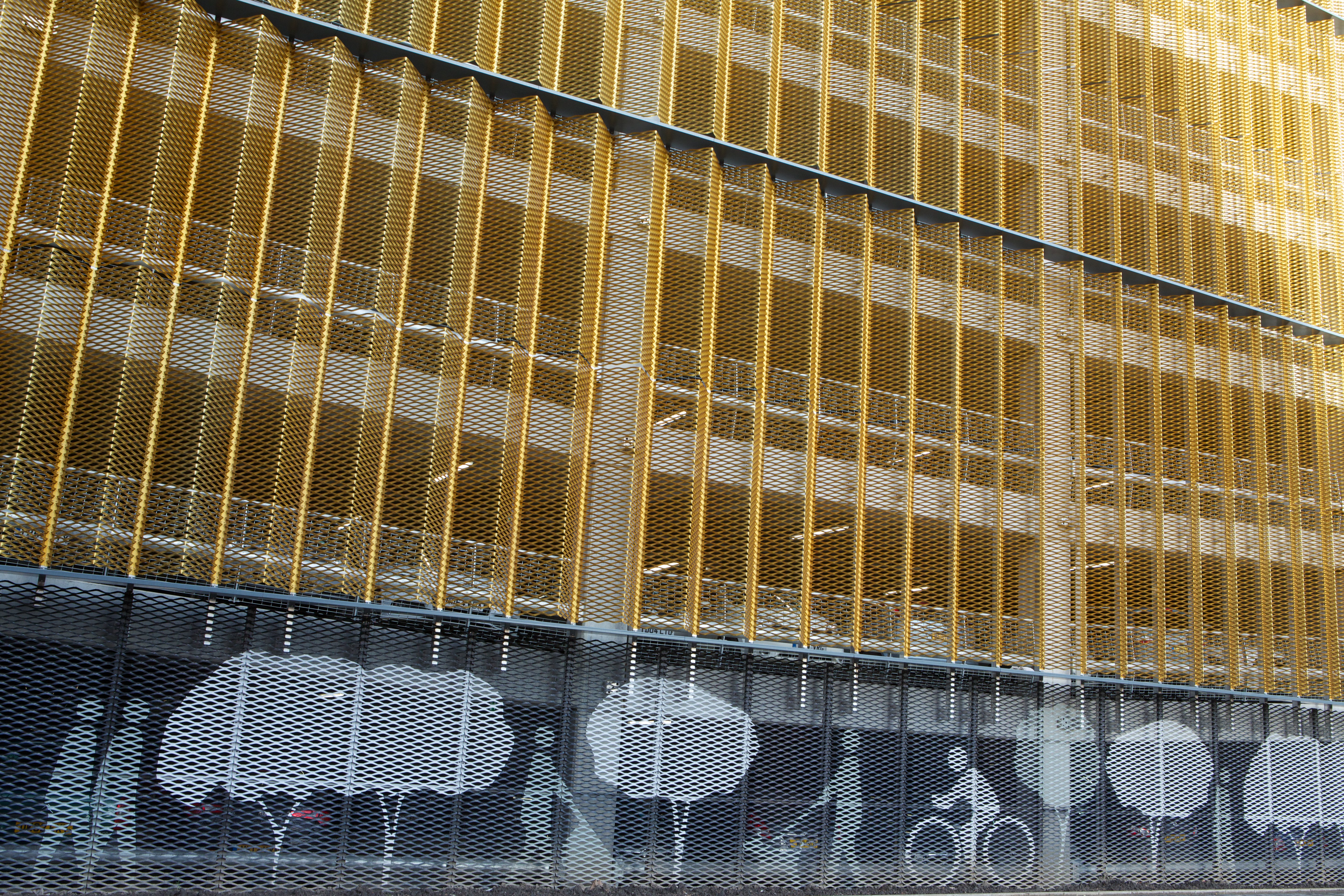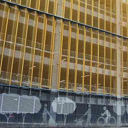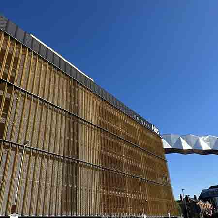 In partnership with Sheppard Robson, Aliva UK designed a stunning gold anodised aluminium expanded mesh facade that stood away from the building to create depth and impact. The facade base featured a bespoke, screen-printed urban landscape to attract attention at street level and create a focal point for visitors arriving by car.