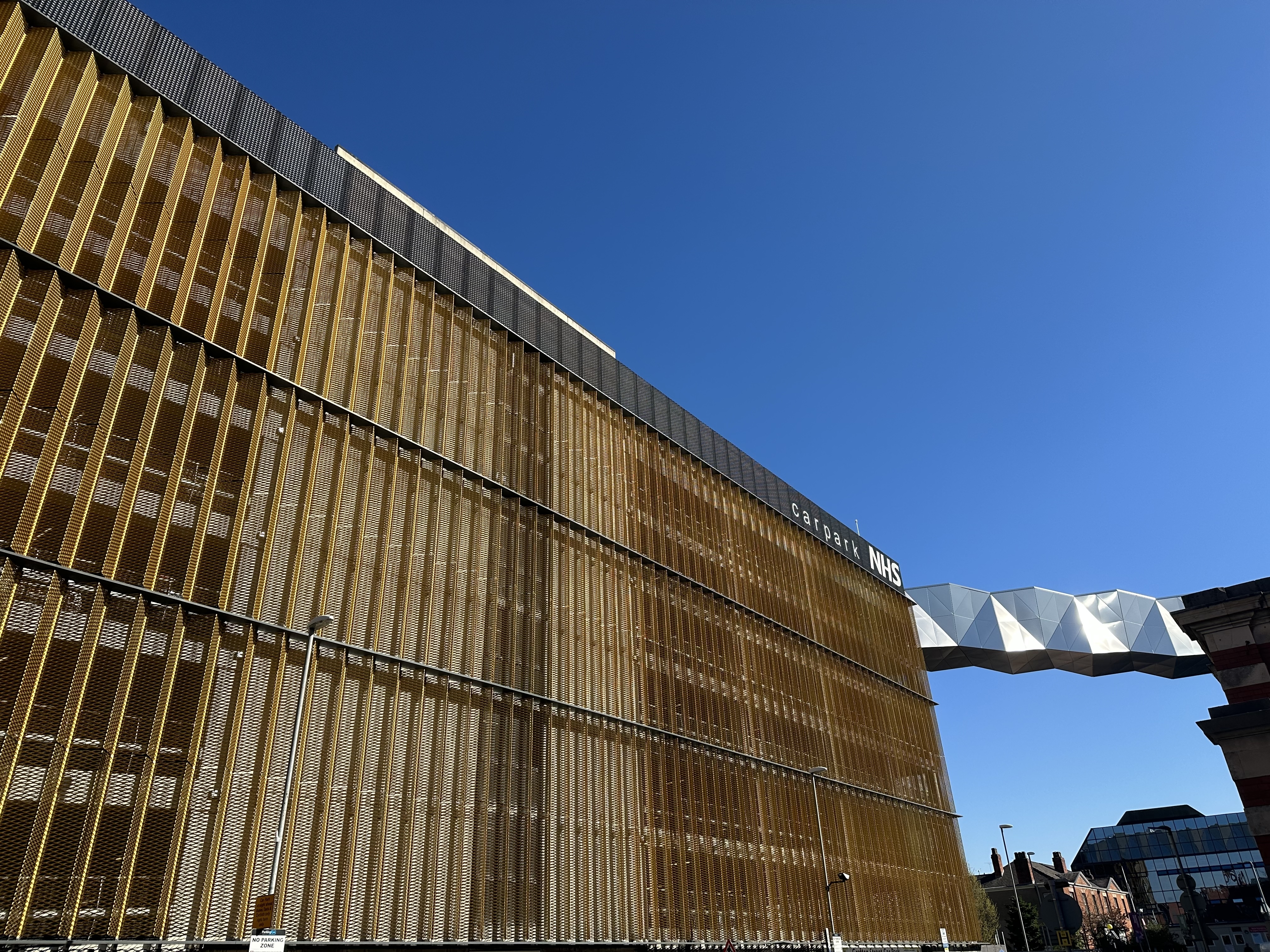 To create an eye-catching, 3D-effect facade that brought alive the Trust’s parking ‘super-hub’ for visitors. The aim was to transform the brick-fronted building into a striking local landmark for Central Manchester’s hospital complex, which cares for a million patients every year. The expanded mesh cladding would not only enhance security, but also achieve a minimum 60% natural air-flow to help the building breathe without the need for mechanical ventilation.