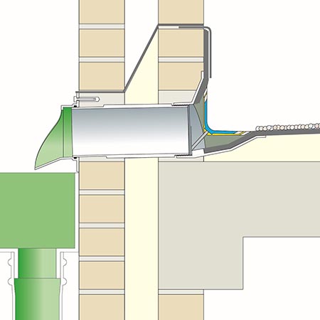 Complex detailing where flat roofs meet walls or parapets, can present major challenges for contractors. As part of Harmer’s well-established Detail Range from Alumasc, Two-Way Roof Outlets provide a high-performance solution, for effective rainwater discharge and long-term protection of the building façade.