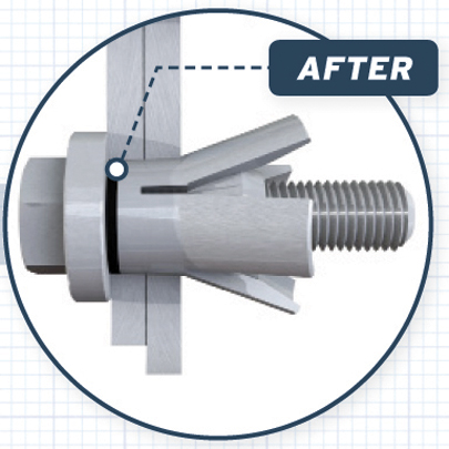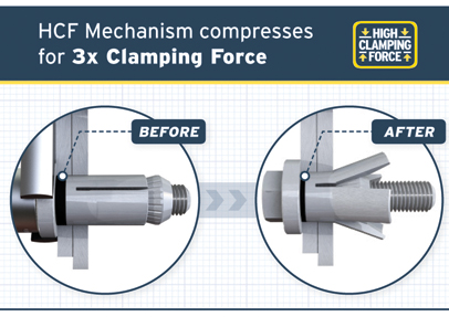 Working closely with structural engineers and steel fabricators, Lindapter identified the need for the larger M16 & M20 products to provide an increased clamping force that would be suitable for structural connections. Research and development led to the invention of the patented 5-part design, with an innovative washer that compresses during installation to significantly increase clamping force between the fixture and the hollow section. The superior performance minimises displacement (movement in the connection) at Safe Working Load for a more secure connection. The Hollo-Bolt HCF is designed to save steel contractors time and money and is exclusive to Lindapter.