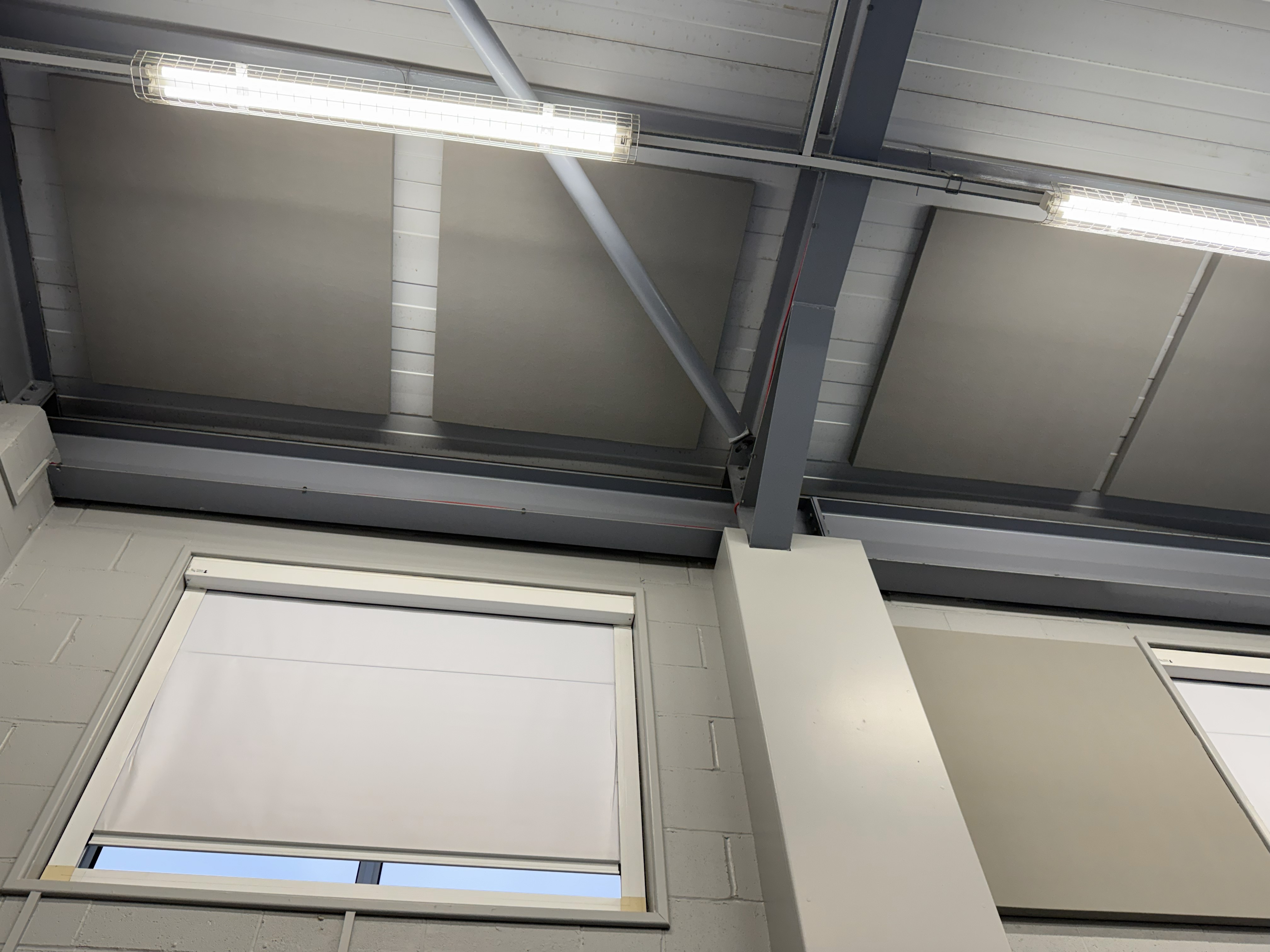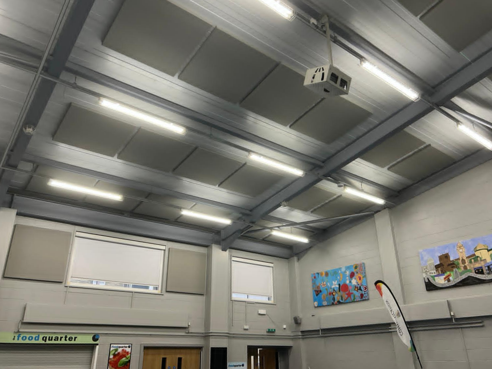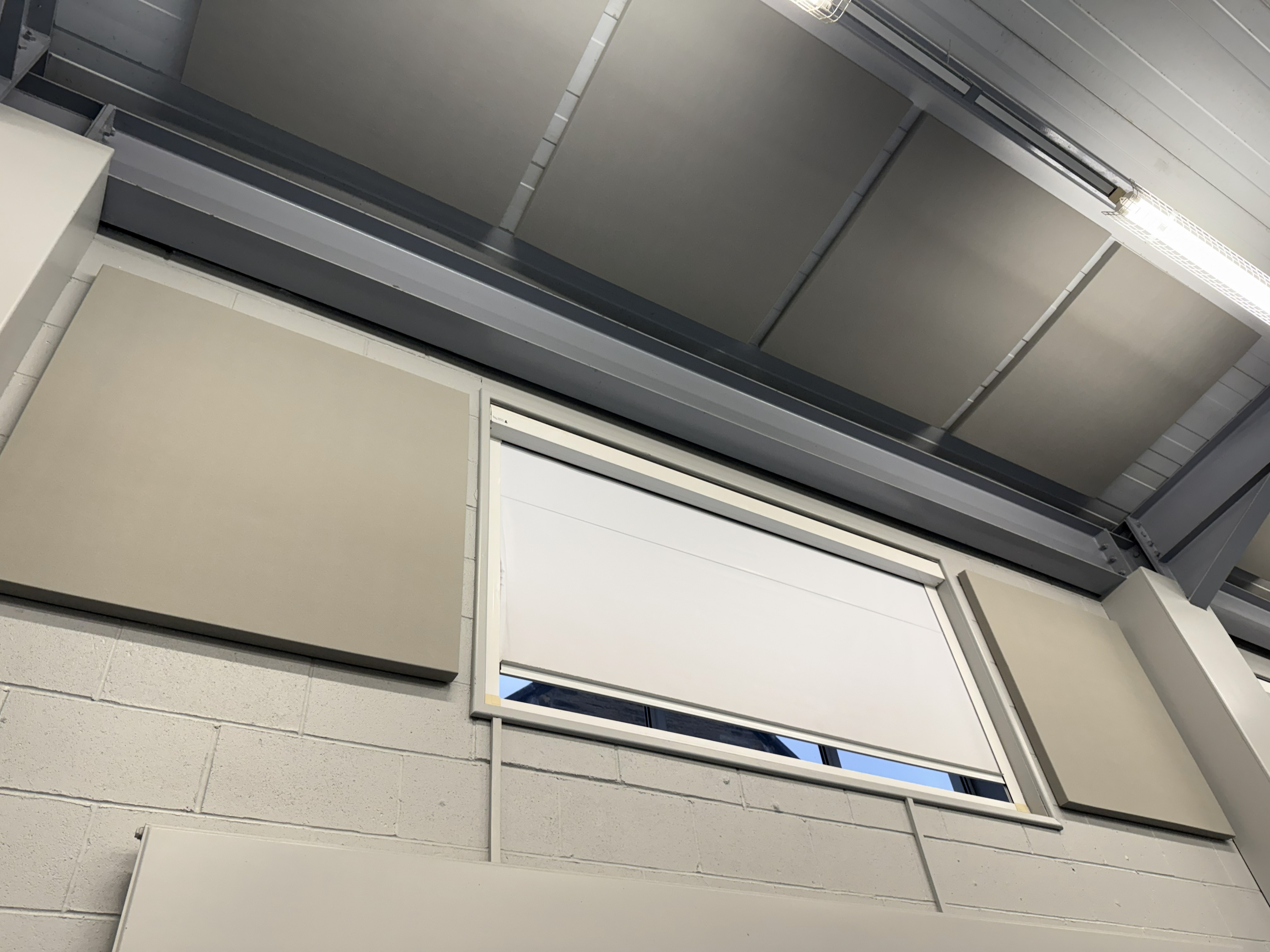 The solution agreed with Sandy Lane was to install 52 x Hush Absorber 50 sound absorption panels within the space to provide 75 sq. m of absorption that did not previously exist. The proposal was to install the 1200mm x 1200mm panels on the soffit within the existing bays created by the ceiling beams and on selected wall locations.