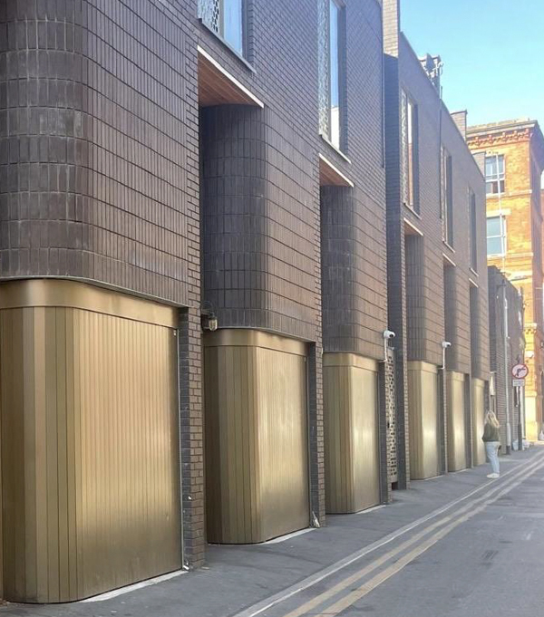Rundum Meir was selected by Snook Architects to supply a highly tailored garage door solution for a new-build development of eight townhouses in central Manchester. The brief required a product that offered not only space efficiency but also enhanced the architectural vision — delivering both form and function in a tight urban setting.
