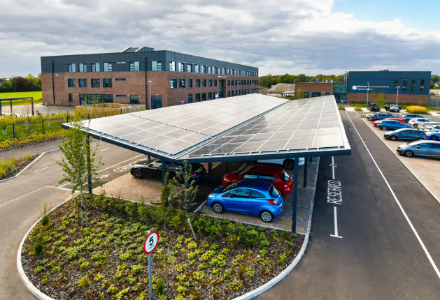In the car park, we installed Newcastle Monopitch Canopies with integrated photovoltaic panels, providing sheltered parking while contributing to the school’s renewable energy strategy. These are a perfect example of how functional infrastructure can double as a sustainable solution, protecting vehicles from the elements while harnessing solar energy.